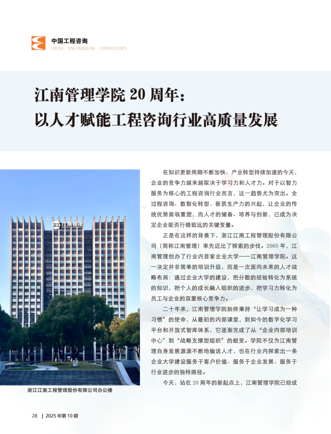 江南管理學(xué)院20周年:以人才賦能工程咨詢行業(yè)高質(zhì)量發(fā)展
